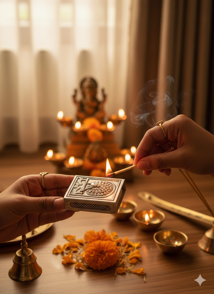 Pure Silver Plated Brass Peacock Matchbox Cover | "Let There Be Light" Sacred Design | Premium Pooja & Home Décor Accessory