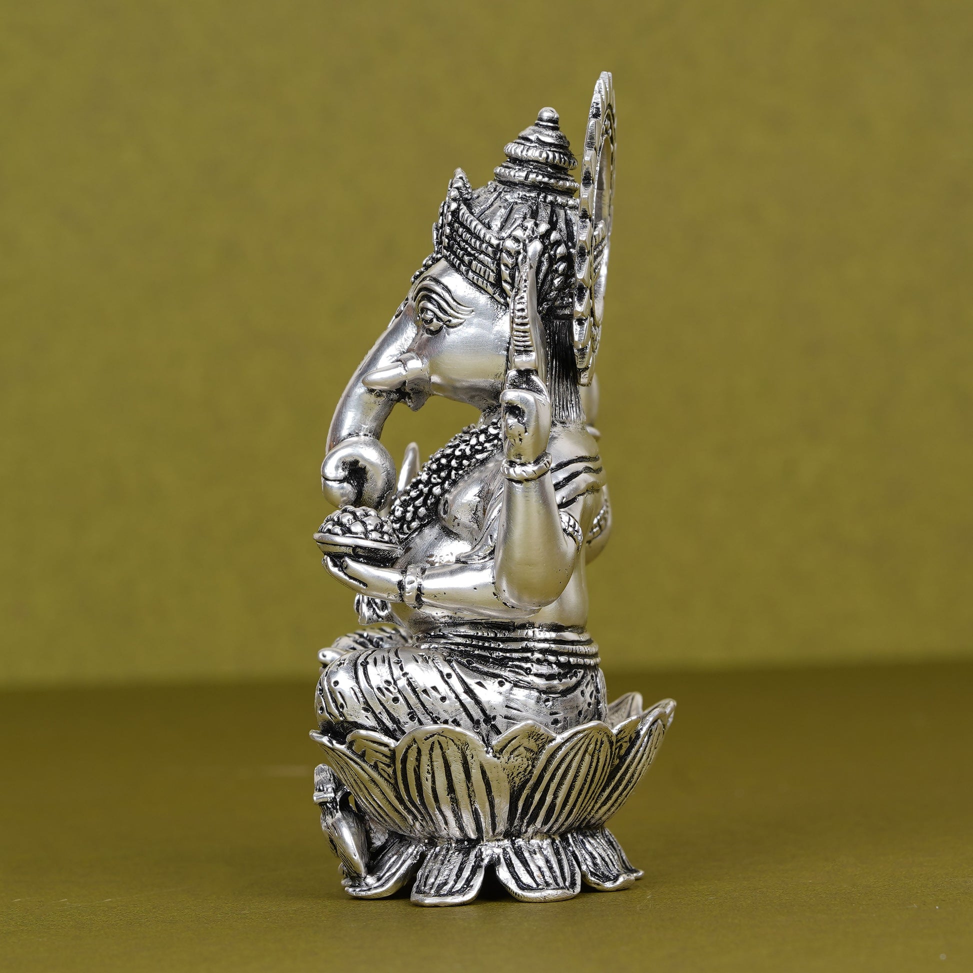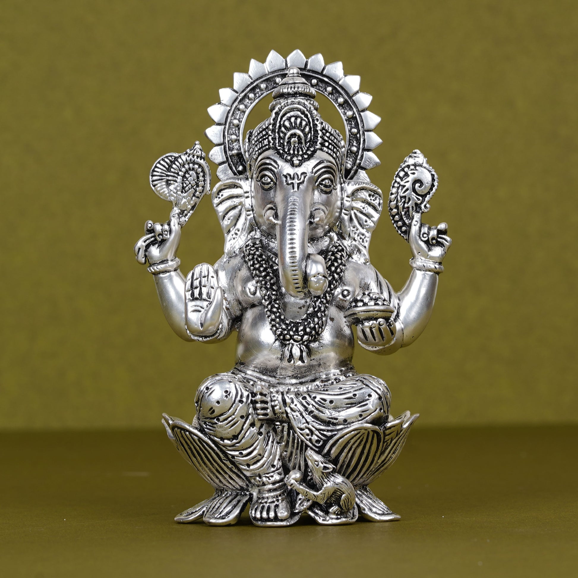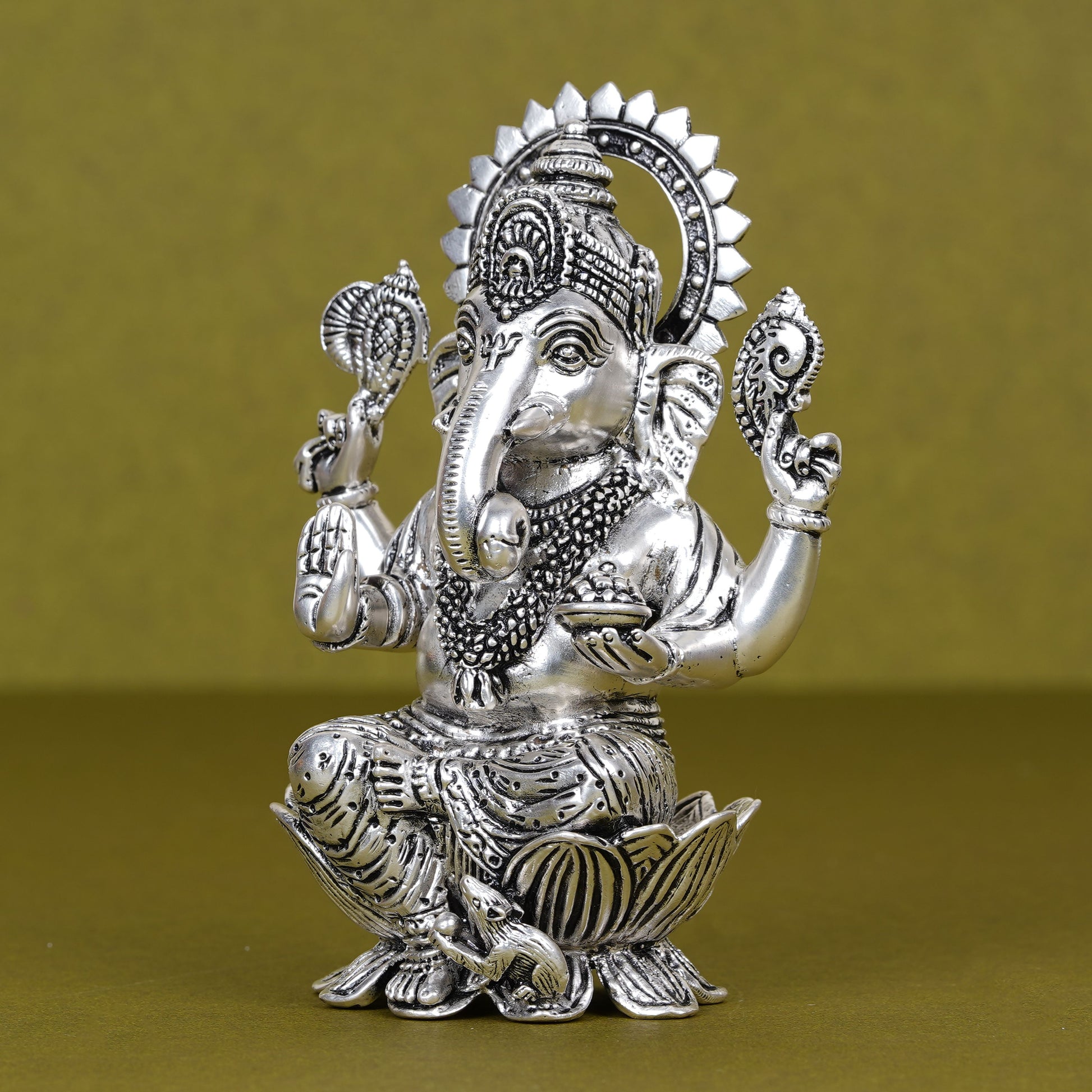 Divine Silver-Plated Ganesh Ji Idol on Lotus