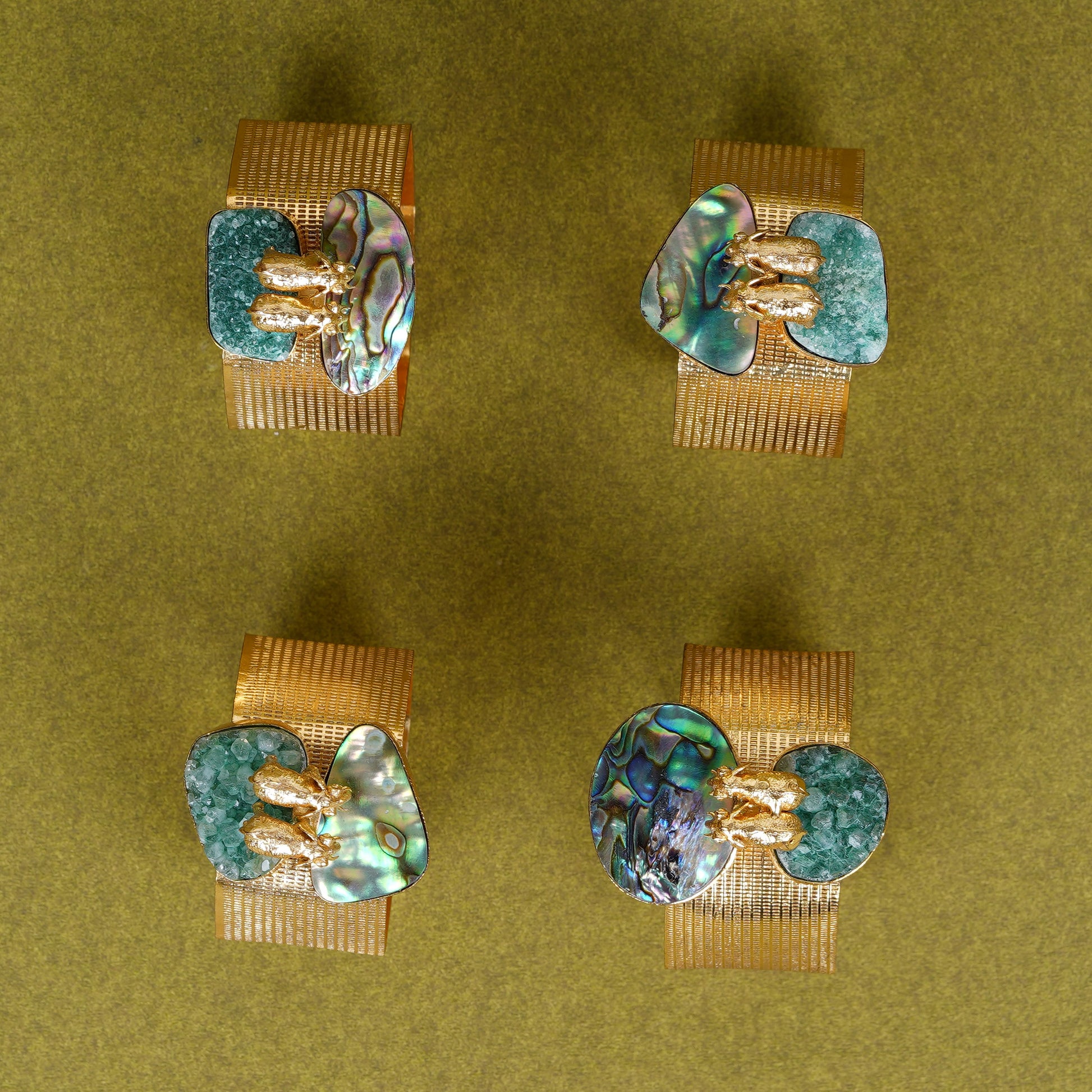 Elephant Duo Napkin Ring with Green & Blue Stones