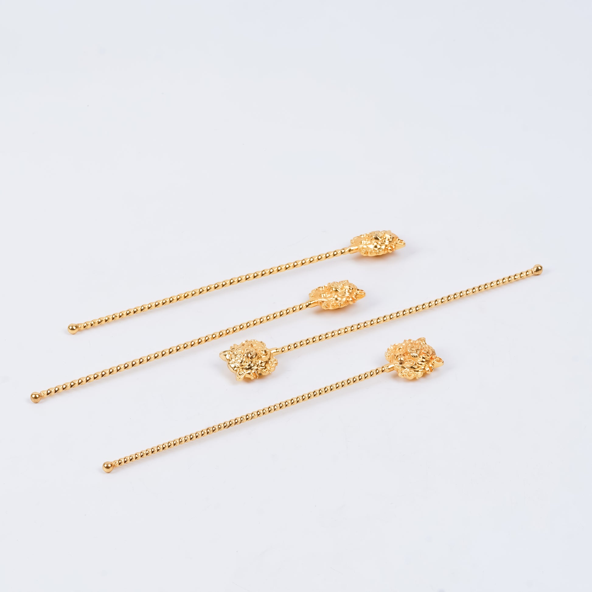 Here's the title and description for the gold-plated tiger head cocktail stirrer set: