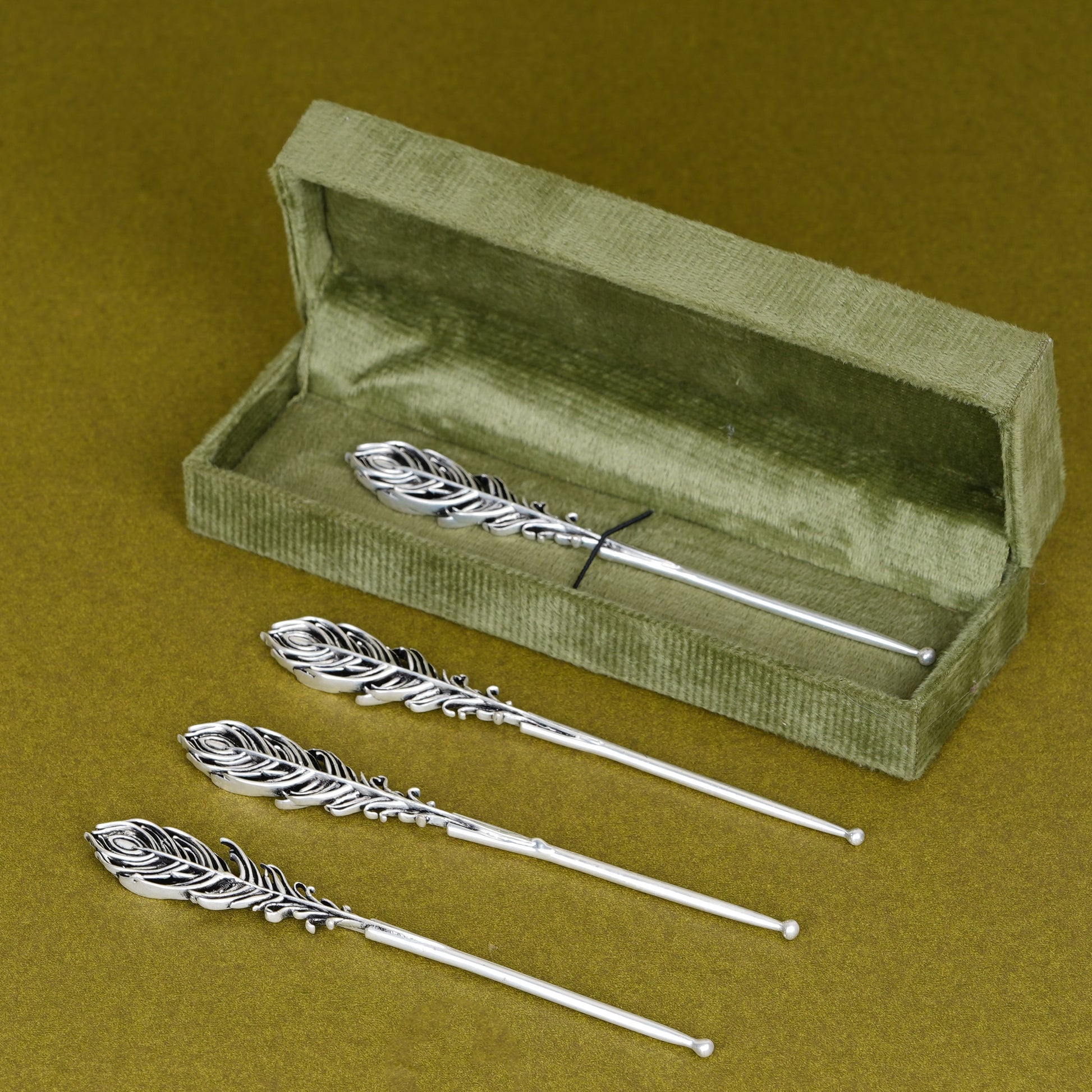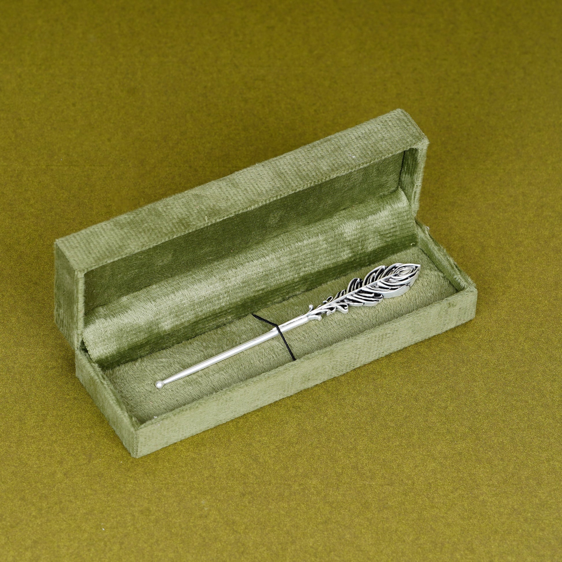 A beautifully crafted tilak stick featuring an elegant feather design, perfect for festive rituals and sacred occasions. Symbolizing purity and grace, it adds a touch of tradition and style to every ceremonial moment.